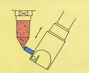 擺動式砂輪修整器,金剛筆沿砂輪錐面母線移動同時以與砂輪中心成30°交線為中心進(jìn)行擺動,以減少修整誤差。